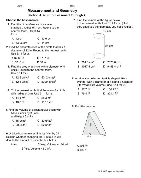 Holt McDougal Geometry Volume of Prisms and Cylinders Holt ... from reader016.vdocuments.mx If you like playing with objects, or like drawing, then geometry is for you! This angles quiz has problems with the following types of angles: Play geometry quiz at mathplayground.com! Students review formerly learned geometry facts and practice citing the geometric justifications in anticipation of unknown angle proofs. The world is built with them. 25 questions (10 in a single game). Watch videos and take practice quizzes. Geometry and spatial reasoning quiz perimeter quiz basic geometry vocabulary quiz.